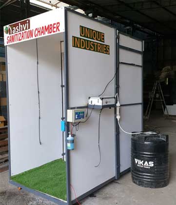 Chirag Patel +91 99986 00358 World’s most advanced Sanitization Tunnel with Automatic disinfectant liquid sprey Chamber and Ozon Chamber for Corona virus (covid-19) designed & manufactured by us. Combined unit@ 3.90 lac. & Only disinfectant sprey Chamber @1.70Lac.