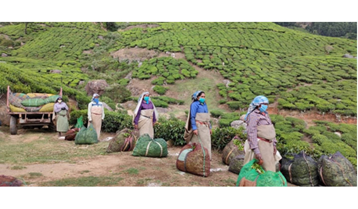 टी गार्डन में काम करने वाले मजदूर सामाजिक अंतर रखकर संक्रमण को रोकने में मदद कर रहे है।
