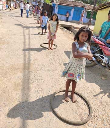 गाँव मे सोश्यल डिस्टन के लिए साइकल पे पुराने टायर का इस्तेमाल किया है। जिस से बच्चों को मजा भी आएगा और संक्रमण से बच सकते है।