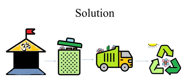 (a) collection of floral waste at place of worshipping, (b) Individual transportation. (c) Natural process of Recycling.