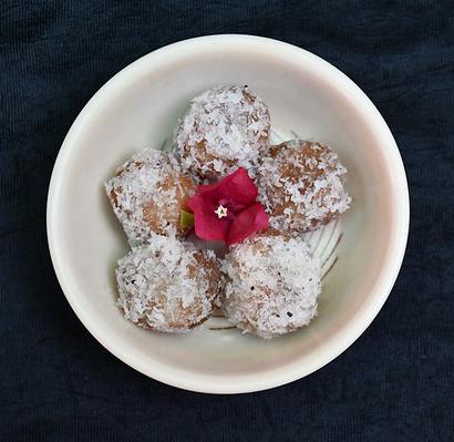 Make the syrup with the above ingrediants and dip the fried balls in the syrup and then roll it on the dessicated coconut.